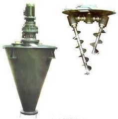 锥形双螺旋混合机的搅拌部件为两条不对称悬臂螺旋; 长短各一,它们在绕自己的轴线转动(自转)的同时,还环绕锥形容器的中心轴; 借助转臂的回转在锥体壁面附近又作行星运动(公转); 该设备通过螺旋的公、自转使物料反复提升,在锥体内产生剪切、对流、扩散等复合运动,从而达到混合的目的。